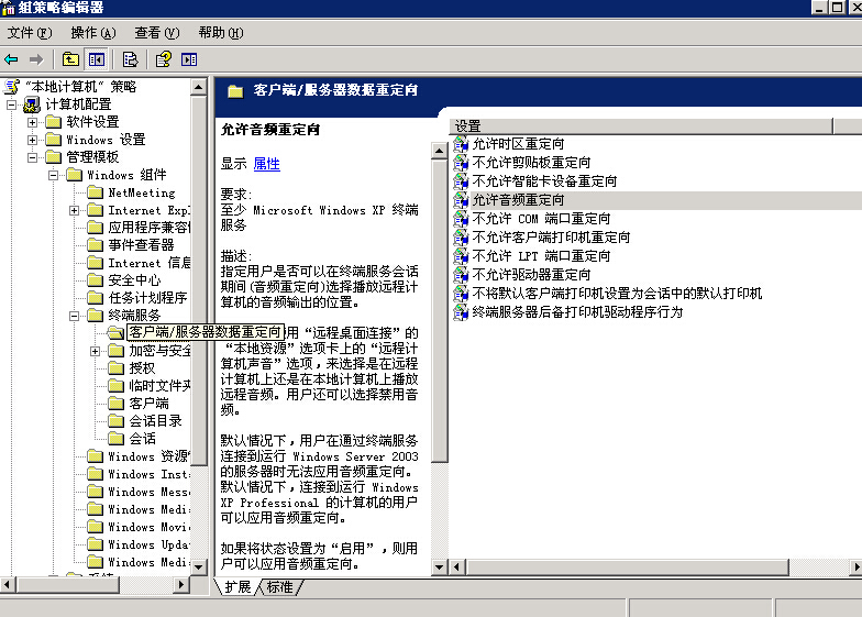 一部分客戶需要能聽到遠程服務器的聲音,可以開啟音頻重定向解決這個問題。