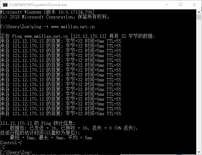 例美國服務(wù)器使用“-t”參數(shù)持續(xù)對主機(jī)www.meilian.net發(fā)送ICMP數(shù)據(jù)包命令執(zhí)行情況如圖3所示: